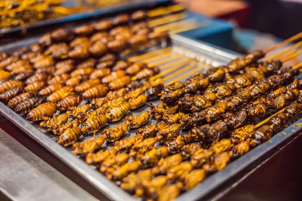 还有虫子,炸蚂蚱烤蚕蛹都是普通操作,吃过的人都知道它们很香很好吃,但如果女生吃这些,就又变了味了。