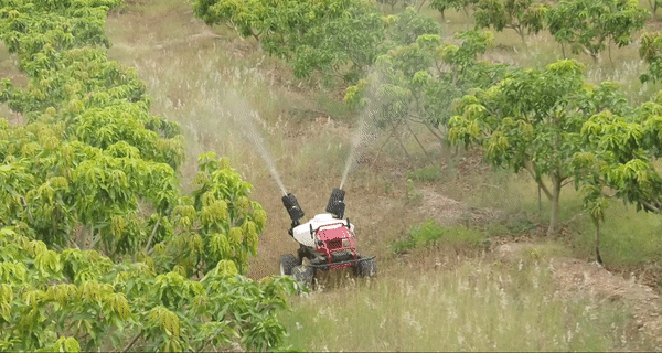 还有自动驾驶的农业无人车,可以喷药,也可以为运输农机、农产品。这里的喷药,针对的是果树这类农作物哟~从而能够实现从下到上全方位消灭病虫害。