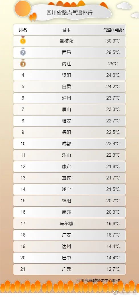 四川日报全媒体记者 陈婷 综合四川气象