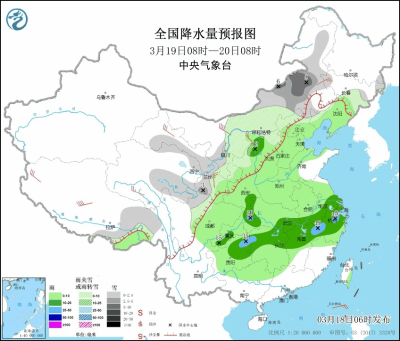 四川省气象台3月18日16时发布强降温蓝色预警:预计,受北方冷空气和高原低槽的共同影响,19~21日我省有一次降温降水天气过程,其中德阳、成都、雅安、乐山、眉山、遂宁、广安、资阳、内江、自贡、宜宾、泸州12市及南充南部、阿坝州东部北部、凉山州东部日平均气温将累计下降7~9℃,盆地南部局部地方超过10℃;盆地大部有小雨,南部有中雨。