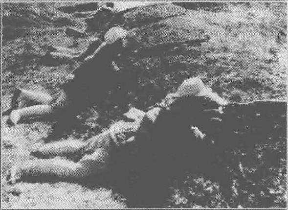 “十来个鬼子兵像野牛一样地冲了过来。张连长一见,忙把我和高邮小战士一拉,3人背靠背,组成三角形,各对付一面,以守为攻。这一场白刃战从中午12时一直杀到下午2时左右。我们排原有45人,现在只有二十几人能作战了。敌人在阵地上撂下了上百具尸体,我阵地岿然不动。”