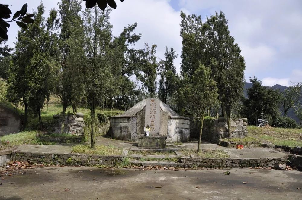 (▲张雪泉夫妇合葬墓)张雪泉(1918~1948),抗日战争爆发后,参加诸暨政工队,投身抗日救亡斗争。曾任姚南民运指导员。1947年,回诸暨坚持斗争,并任路东县政府被服厂负责人,负责浙东游击纵队后勤保障工作。在得知何志相牺牲后,强忍悲痛,夜以继日地工作。1947年9月21日,遭 “浙保”第2团袭击,负伤被捕。在狱中,以怀孕之躯忍受了“杀人魔王”吴万玉惨无人道的折磨,依旧坚守党的秘密。翌年3月8日,被敌人杀害。