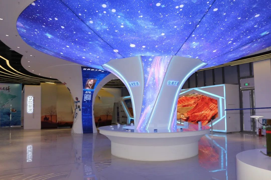 6.张掖(临泽)科技馆:已完成一层展厅展品布展和三层展厅科学影院。一层展厅陈展面积1144平方米,设瀚海明珠展区 “梦回丝路”“遥观丹霞”“大国重器”“智领张掖”四大主题板块;临时展区有中国流动科技馆、动植物标本展示。科学影院面积300平方米,包括九年义务教育阶段的互动教学内容,高中阶段互动内容也将陆续面向公众开放。