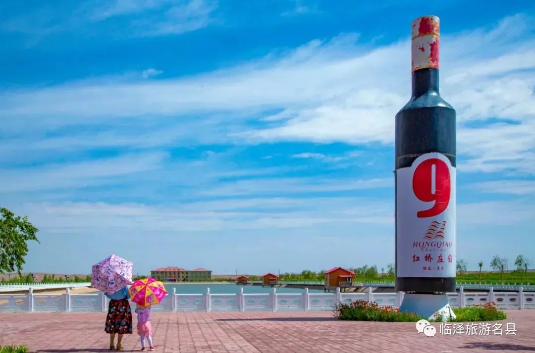 10.红桥庄园:位于临泽县板桥镇古城村营坡滩,南依黑河,北靠合黎山,境内地势平坦,红色沙砾土壤,光照资源丰富,处于世界公认的最适合葡萄生长的黄金纬度-北纬38°,是一家集酿酒葡萄种植、葡萄榨汁、葡萄酒销售及葡萄酒文化推广为一体的葡萄酒庄。红桥庄园利用地理优势和特色产业发展,打造成为集有机葡萄酒原料生产、中高端酒庄葡萄酒加工销售、葡萄田园风光领略、乡村休闲旅游为一体的田园综合体。让游客进人葡萄种植基地领略葡萄日常管护、种植、采收的全过程,在放松身心的同时,达到寓教于乐的目的。