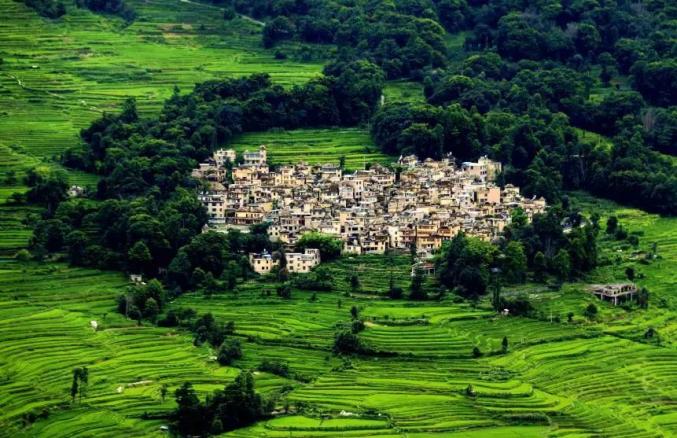 梯田与绿树环绕美丽菁口(龙俊 摄)亚洲地区的历史城镇和传统村落之类文化景观类型遗产,都面临着文化遗产保护与遗产所在地经济发展的冲突。云南的丽江古城和红河哈尼梯田要真正解决保护与发展的矛盾仍然任重道远,对此应妥善处理并争取成为亚洲此类文化遗产保护的最佳范例。