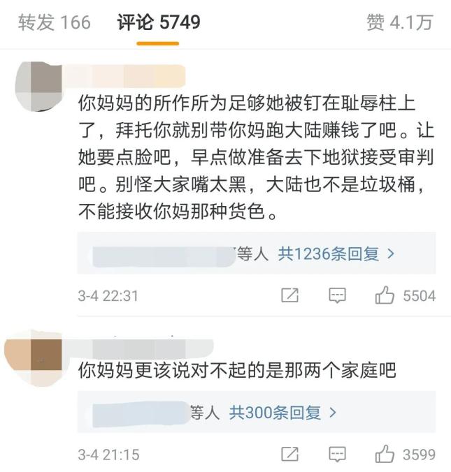 就像台湾某评论节目说的:现在也没有人要追究林月云插足闺蜜婚姻的事,她自己还要把它拿出来卖钱,那两个被你搞的,要不要给人家钱呢?