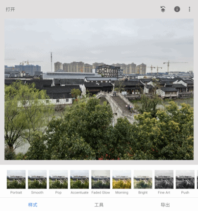 在用 Snapseed 修图的时候,Mate X2 带给我的体验也很接近平板电脑,和常规的手机相比,用 Mate X2 修图的时候能够注意到更多的细节。