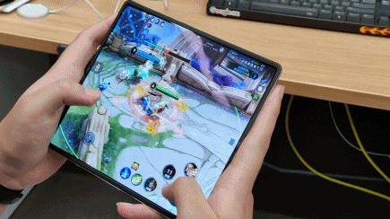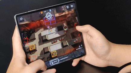 此时两款应用都能够显示完整,憋屈的分屏功能终于能大展身手了。不过玩游戏时就不一定这么爽了,由于折叠屏奇怪的比例,导致游戏画面的两侧视野会窄很多,但上下视野却没有变多。。。