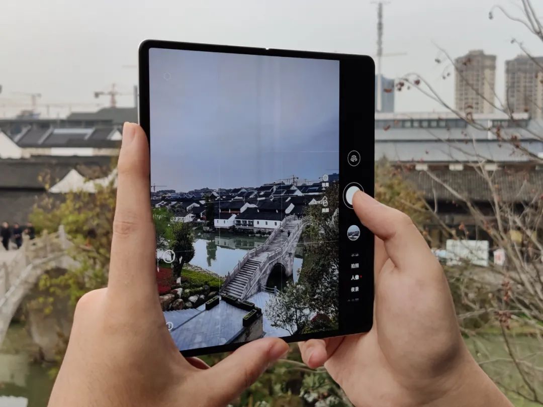 向左滑动不过打开折叠屏之后,拍摄的感觉立刻就变得不一样了,有种画面被放大的感觉,但又有点担心拍出来的照片会不会有裁剪导致照片质量下降。
