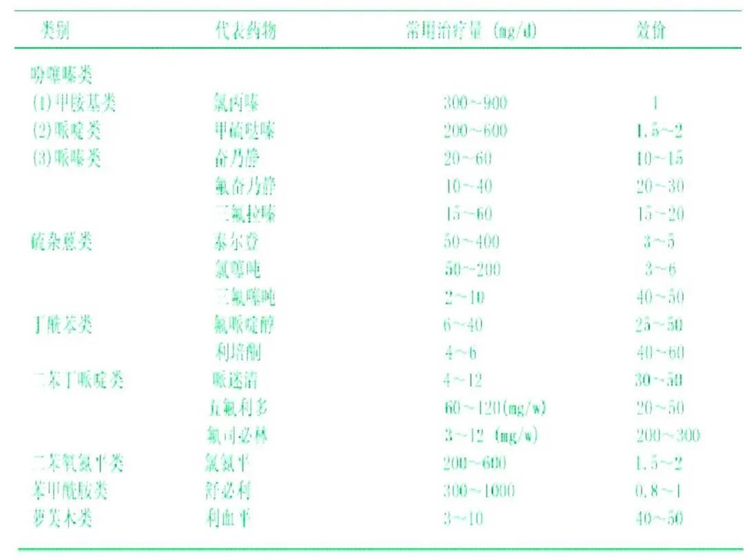表8.第一代抗精神病药常用治疗剂量范围