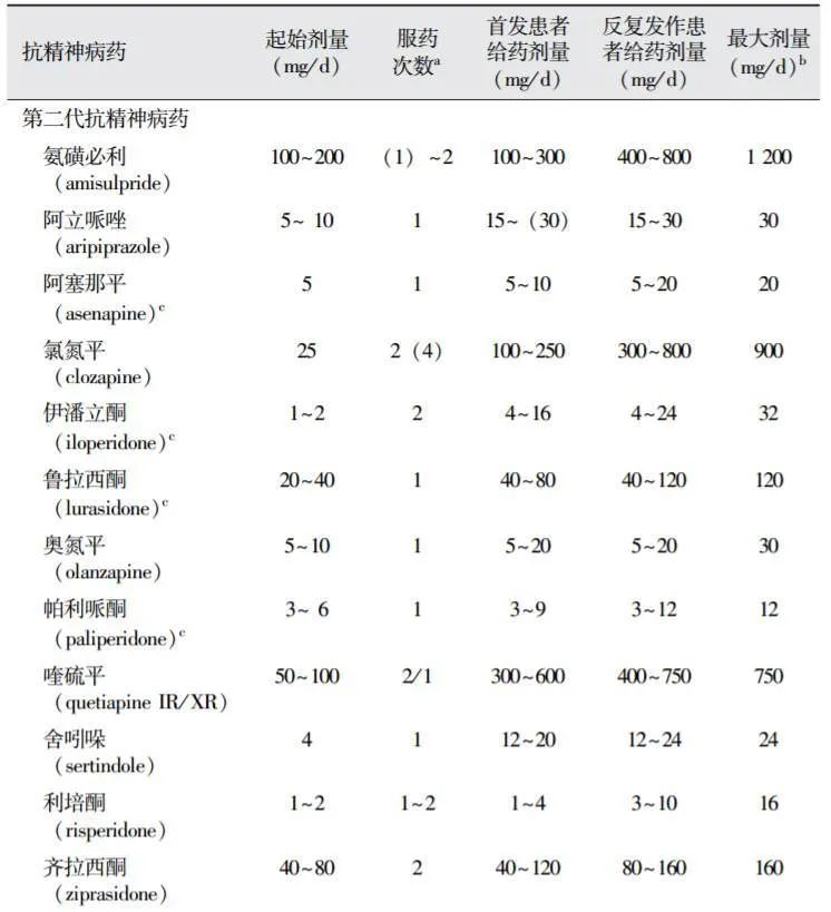 表9.第二代抗精神病药治疗剂量范围