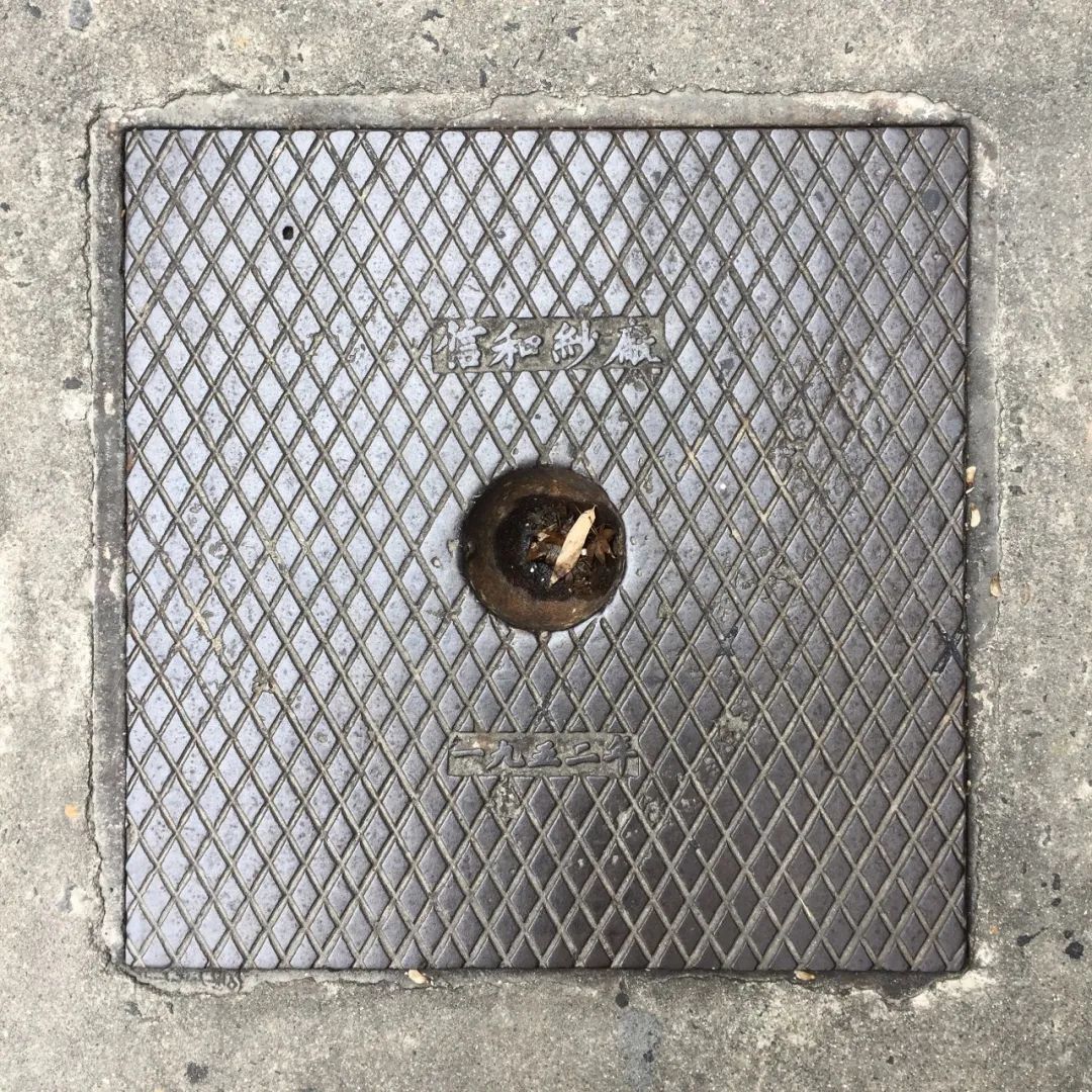 这个井盖上不仅有年份“1952”,还注有所在地的厂名——“信和纱厂”。