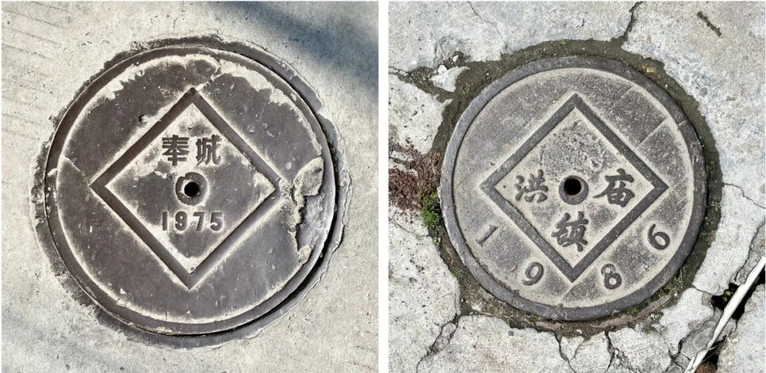 摄于闸北这两只摄于奉贤的井盖分别标有“1975/奉城”和“1986/洪庙镇”的字样。▼