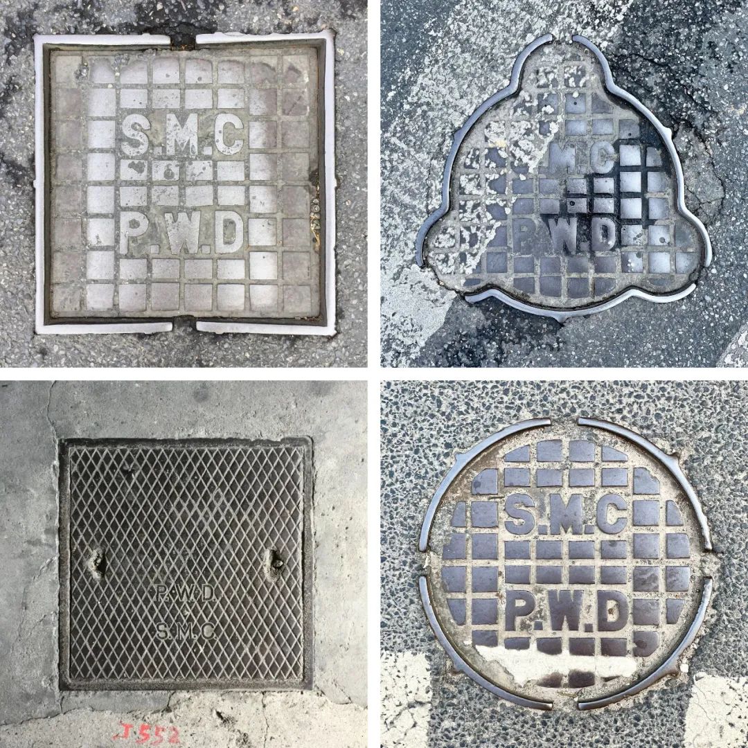 比如下面这几只窨井盖,发现于虹口和黄浦(原公共租界范围内)一带。它们形状和花纹各异,但都铸有“S.M.C”和“P.W.D”的字样,。
