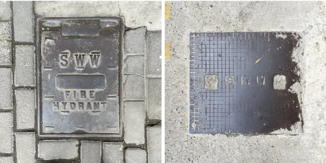 在黄浦和虹口,还可以看到一些老窨井盖上铸有“S.W.W”字样,它是“英商上海自来水厂”(Shanghai Water Works Co. Ltd.)的英文缩写。英商上海自来水厂建于1881年,厂址即今上海杨树浦自来水厂。▼