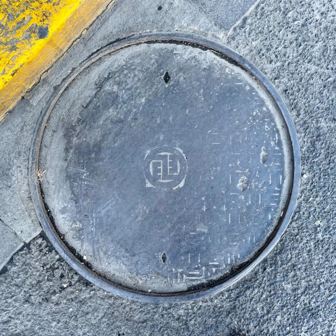 他推测是1950年代上海电话公司的金属井盖,现在已经比较少见了。▼