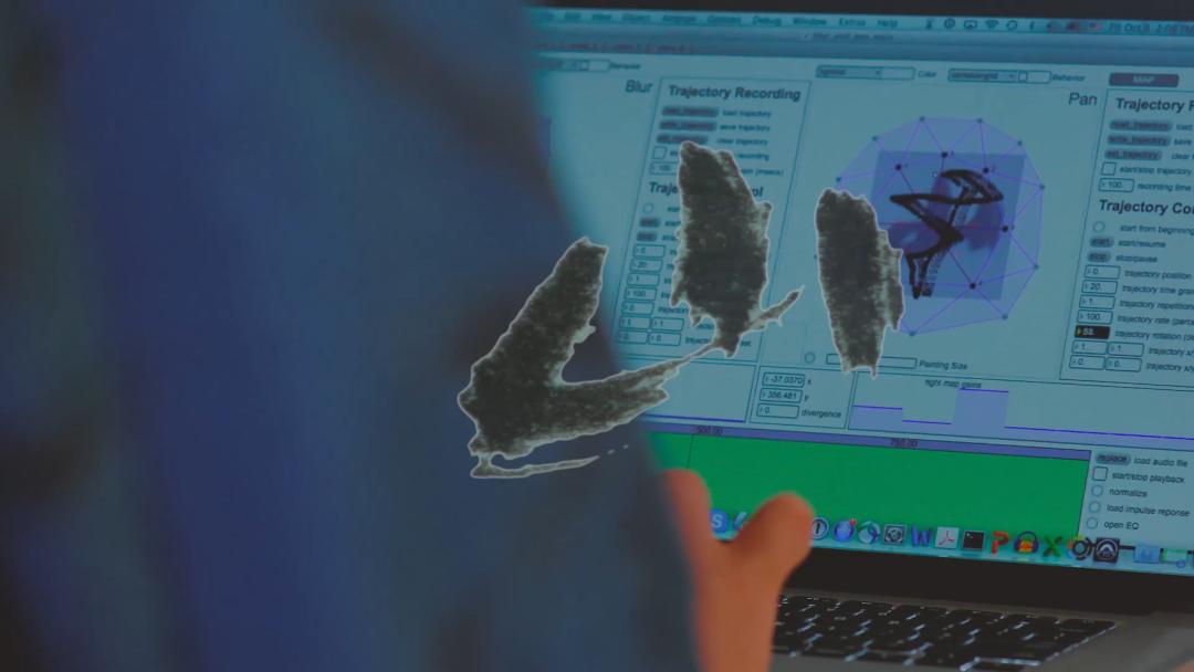现场演出这个作品的时候,一方面使用大屏幕放画面,另一方面是全方位的音响构建,所以你可以感觉到声音是漂浮在整个空中的,就像我们现在这个视频所呈现的这样。我们呈现的飘浮的感觉,也是一种软件所生成的声音效果。这个对应的是黄宾虹画论里面,对于“宿墨理论”的一种应用。这样一个作品给我最直接的震撼是,我觉得我可以为艺术家们带来一些新的思路。在此之前,虽然我作为艺术类特殊人才被国家派到美国去公派访学,但是我一直在寻找一条我的路径,就是,如何真真正正地让艺术和科学能够有一定的交叉?我们的艺术是不是只能为科学做背景音?通过这样一个案例,我意识到,在做交叉学科时、在和艺术家进行对话的时候,我们能够通过一些技术,去更好地实现艺术追求和思想。