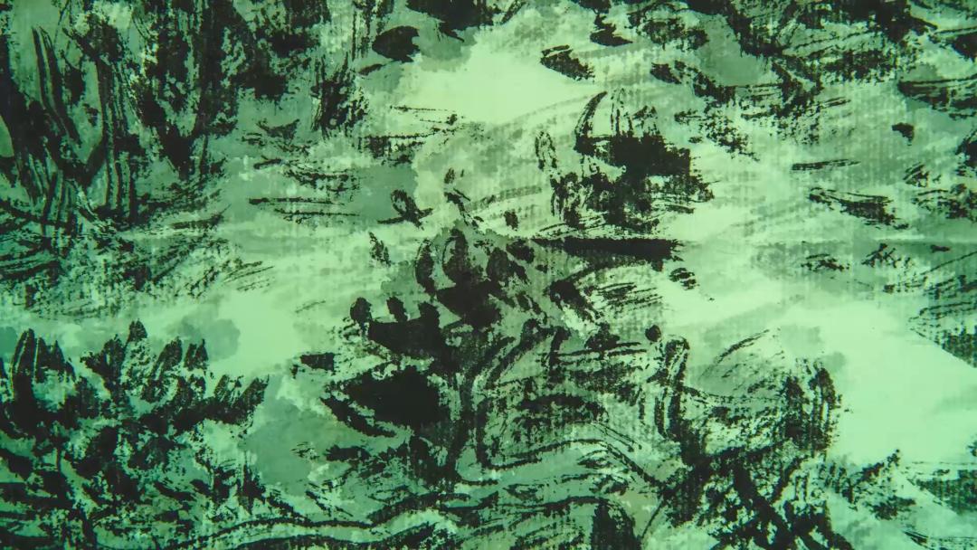 当我们的中国画放到足够大的时候,我们看到的是什么?每个人心里有不同的山水,艺术家眼中的国画,不是简单的停留在点画或皴的技法。就像庄子所说的“利于物而不受制于物”,我们听到的细细碎碎的声音,其实是软件拆封后的侯宝林相声中的元素,是用来体现大家看到的画中的皴皴点点。我们需要不同的声音素材,来表现画作的整体审美精神。细细碎碎的声音,对应的就是《黄宾虹画语录》里面的“沿皴作点三千点,点到山头气韵来”。除了细细碎碎,还可以听到什么?是古琴大师吴景略的《潇湘水云》,在这里作为一种声音素材加以使用,也是为了突出山水这个主题。
