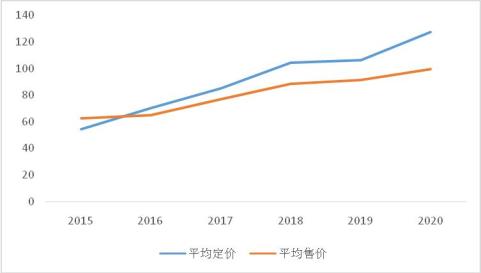 众所周知,日历书具有鲜明的文创产品特性,已不再是一种功能性产品,人们购买更多是为了精神上的愉悦与每日翻页撕页的仪式感,所以在定价方面存在较大的溢价空间,加之纸张价格的上涨以及装帧设计上的投入,使得日历书的价格几年来不断上涨。平均定价从2015年的54.4元,上升至2020年的127.2元,平均售价从2015年的62.7元上升至2020年的99.8元。