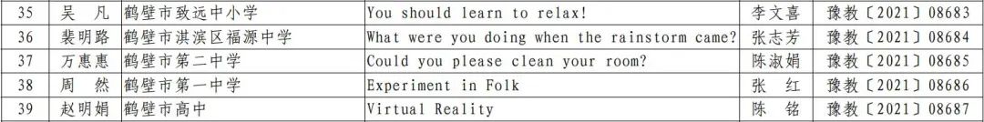 河南省普通中小学优质课名单公布!鹤壁这些教师获奖啦!