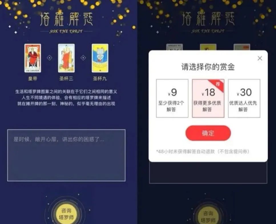 “我下周工作运势怎么样?”“考试能不能通过?”“新恋情什么时候出现?”人们对于未来的不确定性扑面袭来,焦虑烦恼一时难以消解,以有限成本换取“神秘意见”就成为一种选择。