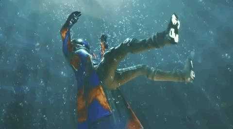 虚拟人乘坐飞船而来,仿佛巨大的神祗降临,宇宙在他手里翻滚。他双手抓取天空里的星星,撞击在一起引发爆炸,天空瞬间变成了血红色。