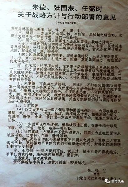 这是朱德、张国焘、任弼时关于战略方针和行动部署的意见内容来源 | 中国甘肃网