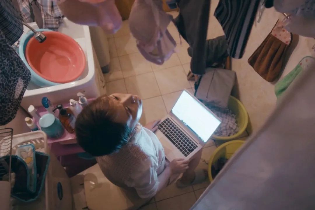 《安家》中的二胎职场妈妈深夜躲在卫生间加班。