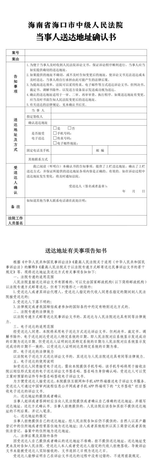 便民小贴士丨《送达地址确认书》《诚信诉讼保证书》文书模板来啦