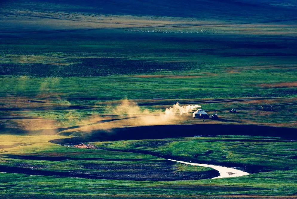 草原那坦荡如砥,绿草接天的壮美景象