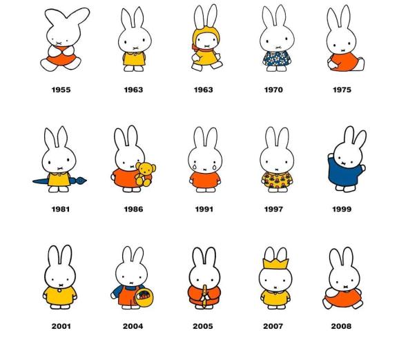 那么66岁的米菲一共经历多少次改版呢?自从第一只米菲在1955年诞生以来,它的形象外貌一直在为了顺应时代潮流而不断调整。