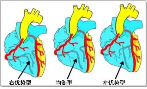 虽然左冠状动脉更粗大,但大部分国人以右冠状动脉供血区域更多,为右优势型,也有部分国人为均衡型和左优势型。