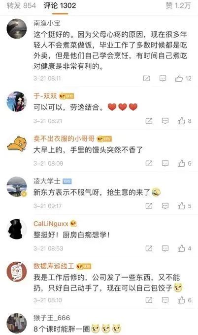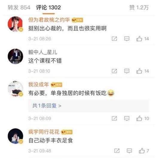 网友“我没成年”说,“有必要,单身独居的时候有饭吃。”