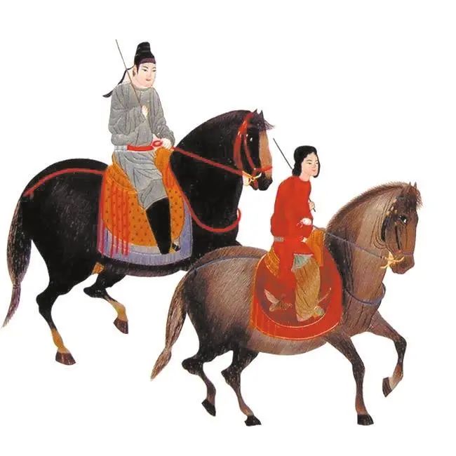 “白马饰金羁,连翩西北驰。”这是曹植《白马篇》中描写的游侠少年形象。马是白马,马的辔头挽具是金色的,多么鲜明生动的画面!诗句只描写白马的装饰,骑在马上的少年却不着一字,但只看漂亮的马儿,骑马少年的英武形象就呼之欲出了;同样,看看宋代诗人李弥逊《行路难》中的诗句“黄衫年少金雕鞍,日高华屋春梦残。”,黄衫少年与金雕鞍配在一起,更是一幅青春靓丽的美好画面!