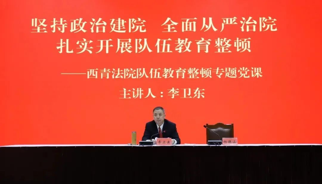 西青法院党组书记、院长以“坚持政治建院,全面从严治院,扎实开展法院队伍教育整顿”为题为全院干警作了专题党课辅导。