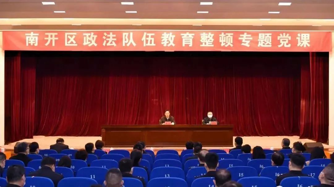 南开区委书记、区政法队伍教育整顿领导小组组长以“扛起教育整顿政治责任、提升政法队伍能力素质、确保刀把子牢牢掌握在党和人民手中”为主题,为全区政法系统党员干部讲专题党课。