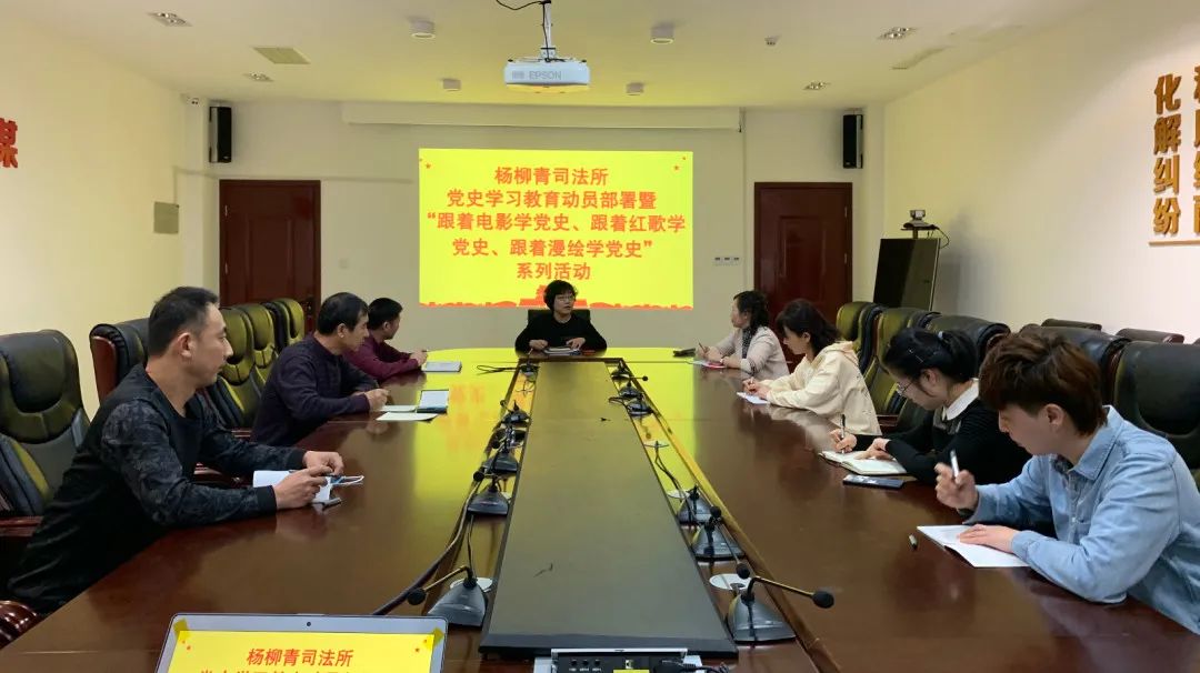 杨柳青司法所组织召开党史学习教育动员部署会暨跟着电影学党史、跟着红歌学党史、跟着漫绘学党史,三个“跟着”党史学习系列活动。全市政法动态