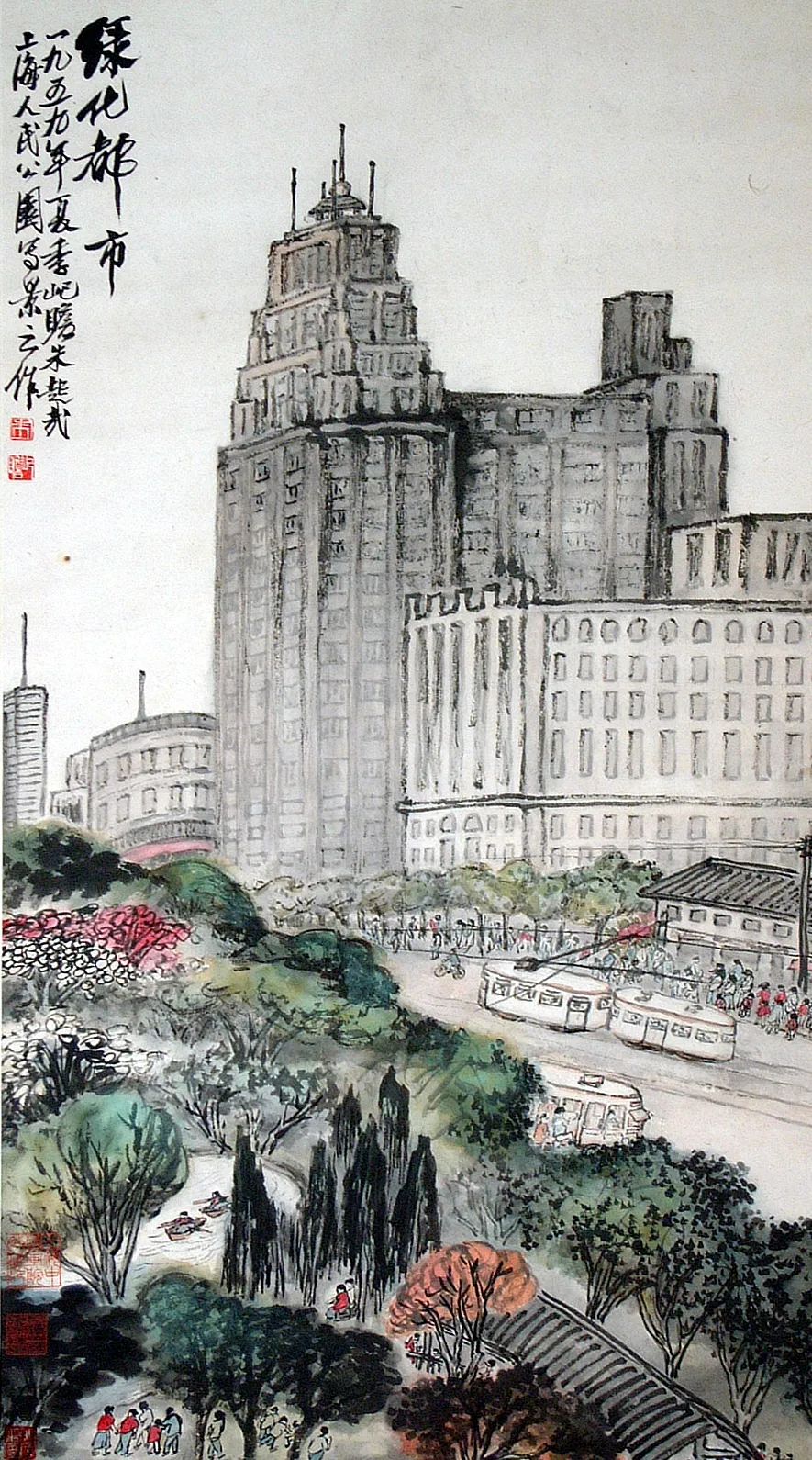 《绿化都市》 朱屺瞻 1959年 91×51cm