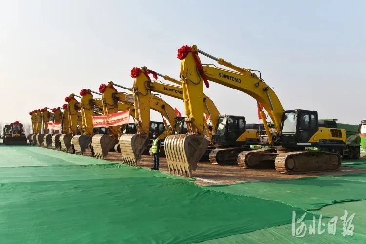 位于雄安新区容城县城西部的容西片区E单元安置房及配套设施项目工地,机器轰鸣,一辆辆挖掘机挥舞着铁臂,一辆辆运输车快速驶过,项目建设正在紧张有序推进。