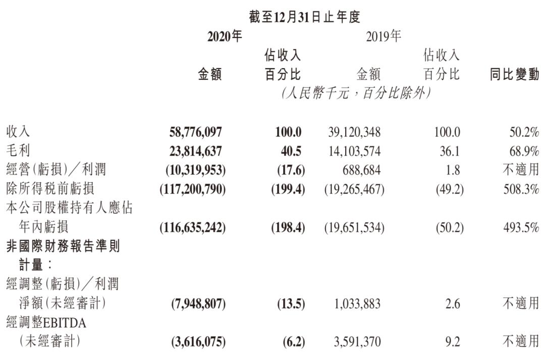 财报数据显示,快手2020年全年收入588亿,同比2019年增长50.2%,但扭盈为亏,经营利润从2019年的6.9亿元变成2020年的-103.2亿元。而听起来很玄乎的“2020年全年亏损1166亿元”,是由于过往融资发给股东的“可转换可赎回优先股”公允价值增加带来的。即估值越高,公允价值就“损失”越多。