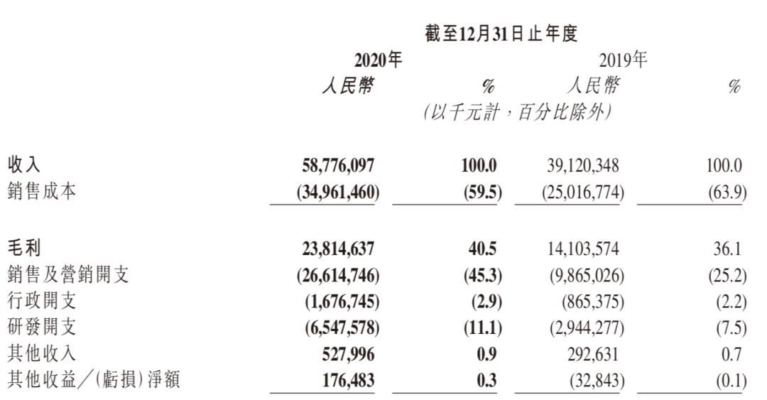 另一方面,随着直播行业竞争加剧,获客和促活的成本提升,快手加大了营销和研发方面的支出,去年一整年的支出分别为266亿元和65亿元。财报称,这两类扩张性的投入或许间接让快手首次出现103.2亿元的经营亏损。而2019年,这两方面的开支仅为98.7亿元和29.4亿元。
