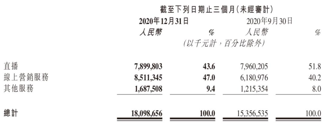 如果说快手的最新业绩表现合格,那么最大的亮点是,快手的收入不再依赖直播,而是直播、电商和线上营销三驾马车齐驱。