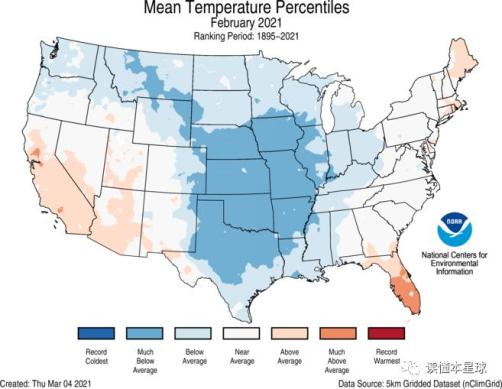 今年这次北美寒潮就是一例,二月份,由于北极涡旋南下,寒潮顺着大平原直抵南部得克萨斯州。温度迅速下降,得州北部工业城市威奇托福尔斯测的最低气温-22℃(全州最低),达拉斯附近测的最低气温-18℃,南部首府休斯顿最低温度降到-11℃。要知道休斯顿冬季气温跟广州差不多,平均都在10℃以上,极少低于0℃。这还是最南部的州,科罗拉多州尤马测的最低气温-42℃,明尼苏达测的-41℃,堪萨斯州诺顿测的-25℃。