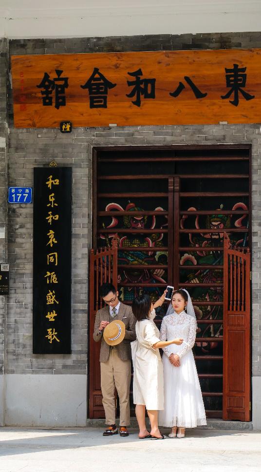 恩宁路上的八和会馆,曾是粤剧艺人建立的粤剧仝人行会组织,历史可以追溯到清光绪年间。经过修缮维护的八和会馆,如今也成了年轻人文化寻根的热门去处,除了拍照留影,制作潮玩视频,它更是了解粤剧艺术史的一个重要窗口。
