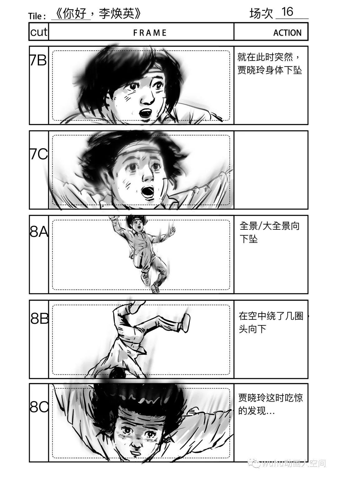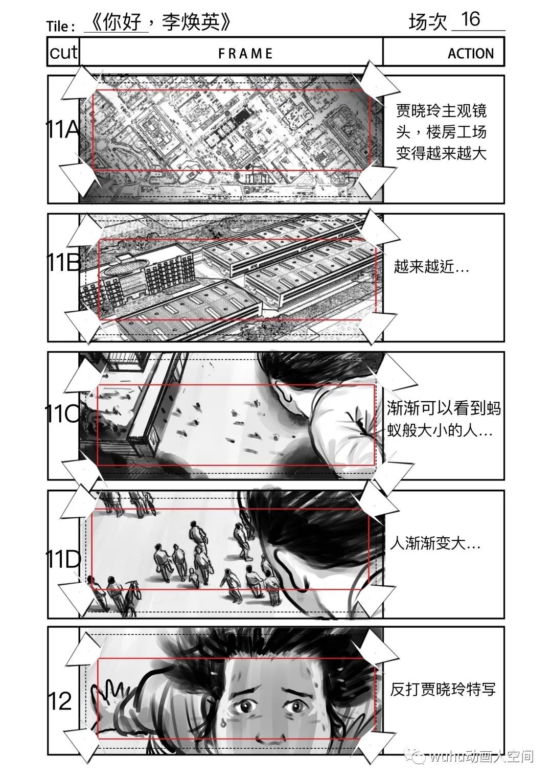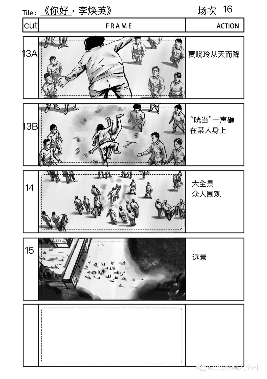 所以,很难说在分镜阶段就可以完全将情感传递出来感染到观众。我们尽可能画得生动形象,机位巧妙,努力让幕前幕后的工作人员在心中有更直观的画面或者概念,方便他们在分镜画稿的基础上进行更好的再创作。