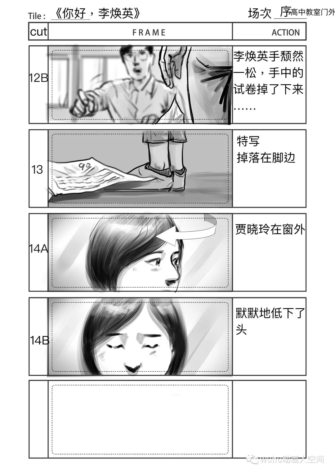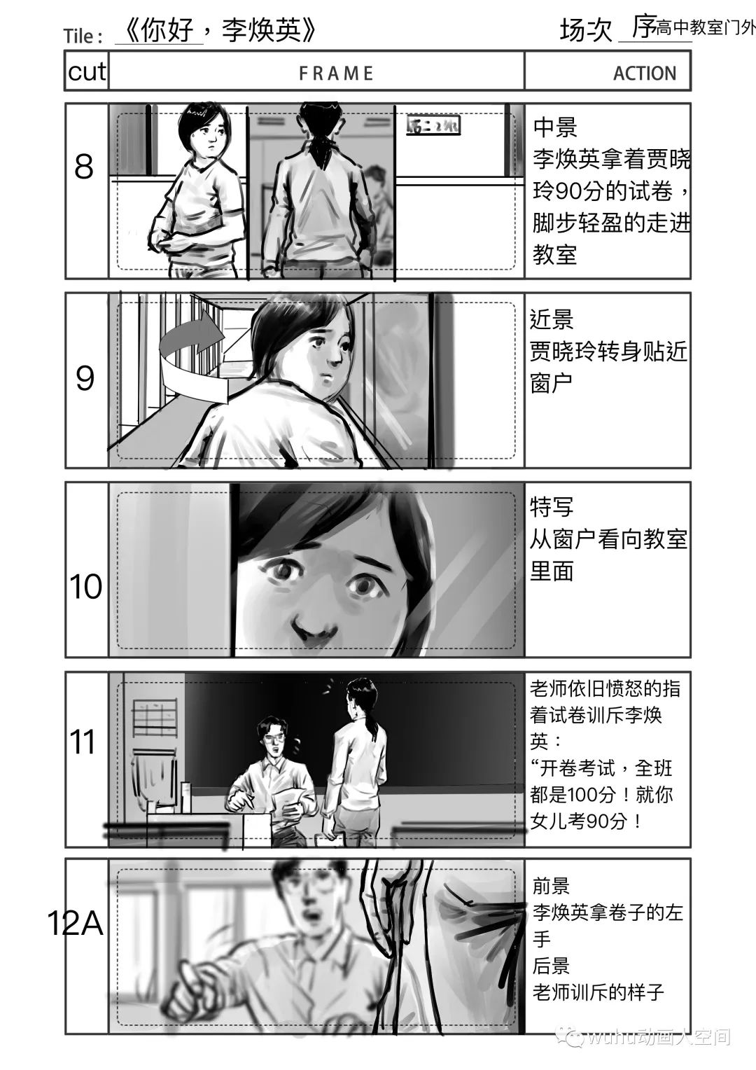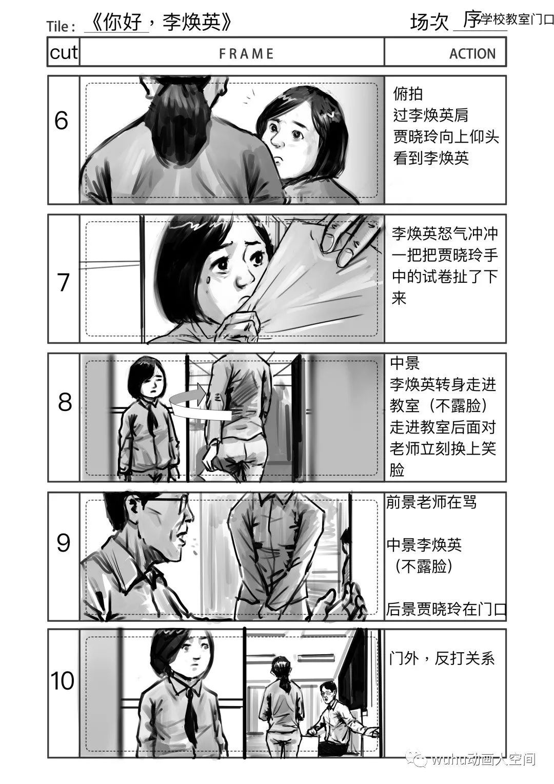所以,很难说在分镜阶段就可以完全将情感传递出来感染到观众。我们尽可能画得生动形象,机位巧妙,努力让幕前幕后的工作人员在心中有更直观的画面或者概念,方便他们在分镜画稿的基础上进行更好的再创作。