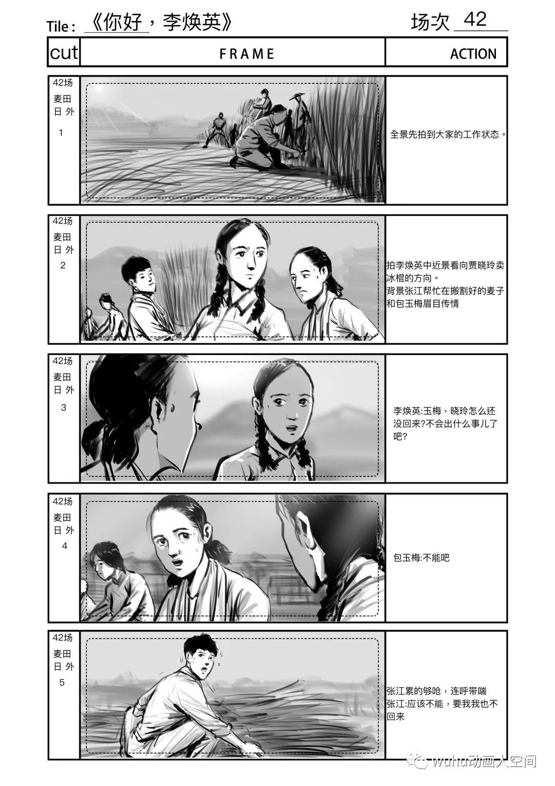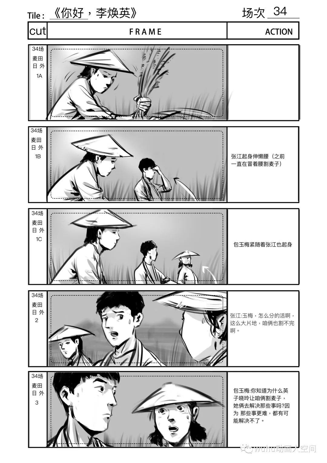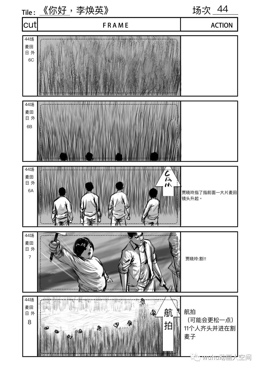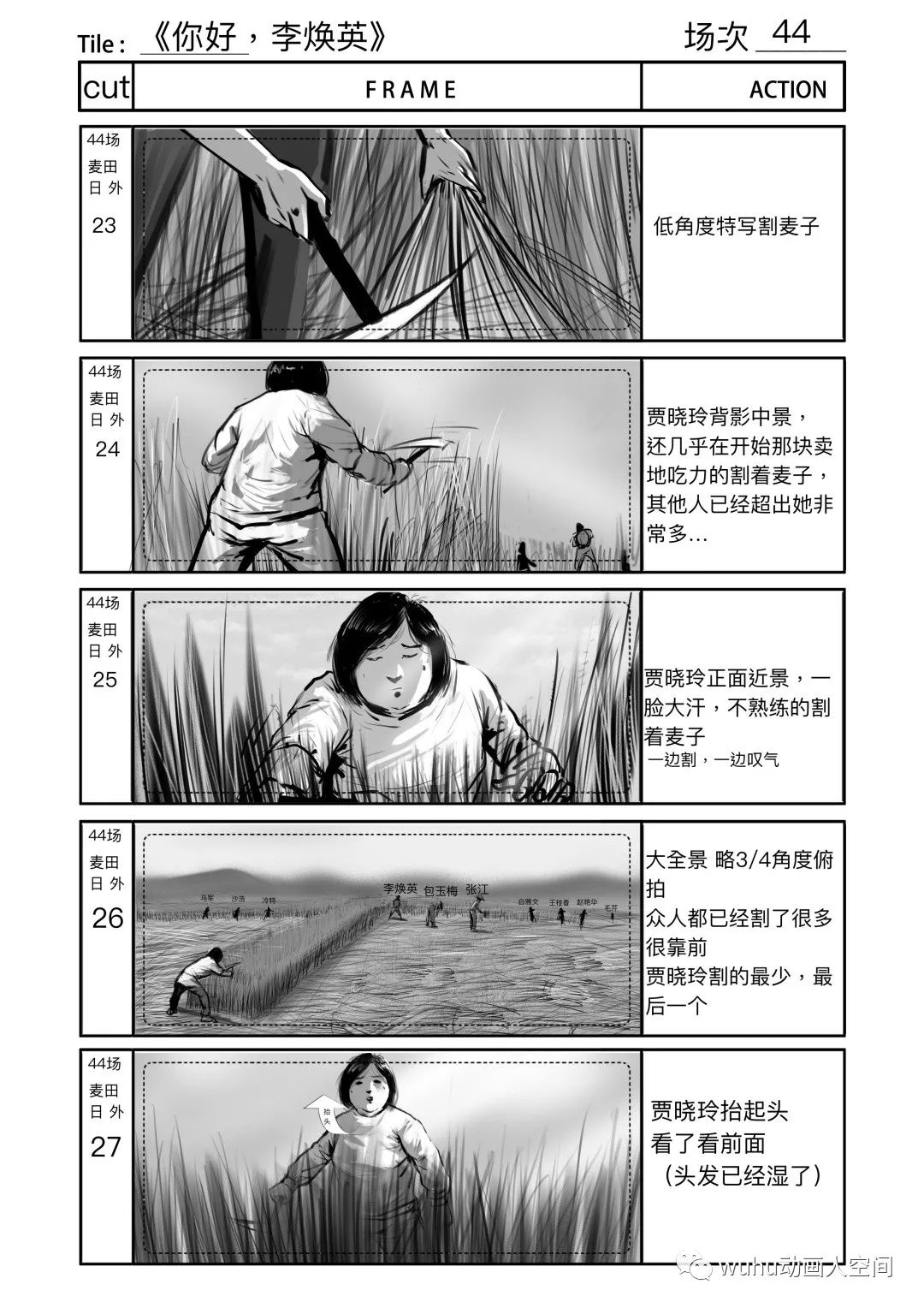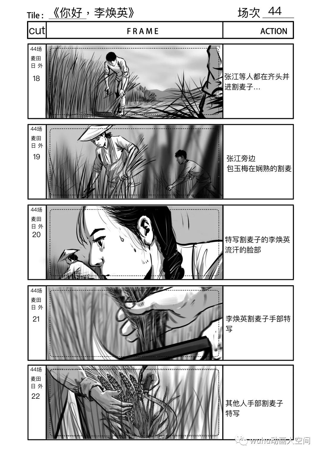 左右滑动查看更多【割麦子】幕后分镜设计(部分)