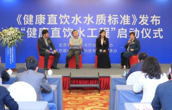 ▲ 3月25日,由北京包装饮用水行业协会主办的“健康直饮水工程”启动仪式在京举行,发布《健康直饮水水质标准》。发布会同期举办“共话健康水”论坛。(周烨 摄)