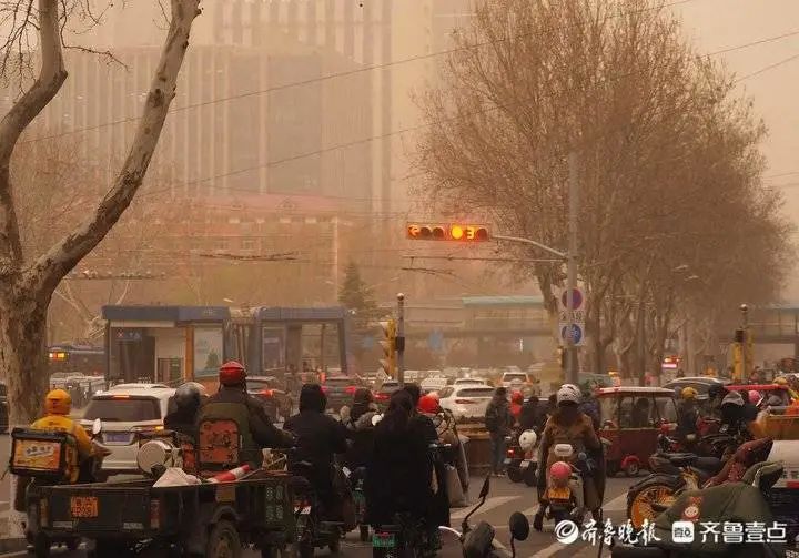 15日,济南受到“近10年来最强沙尘”影响,天空昏黄。根据中央气象台消息: