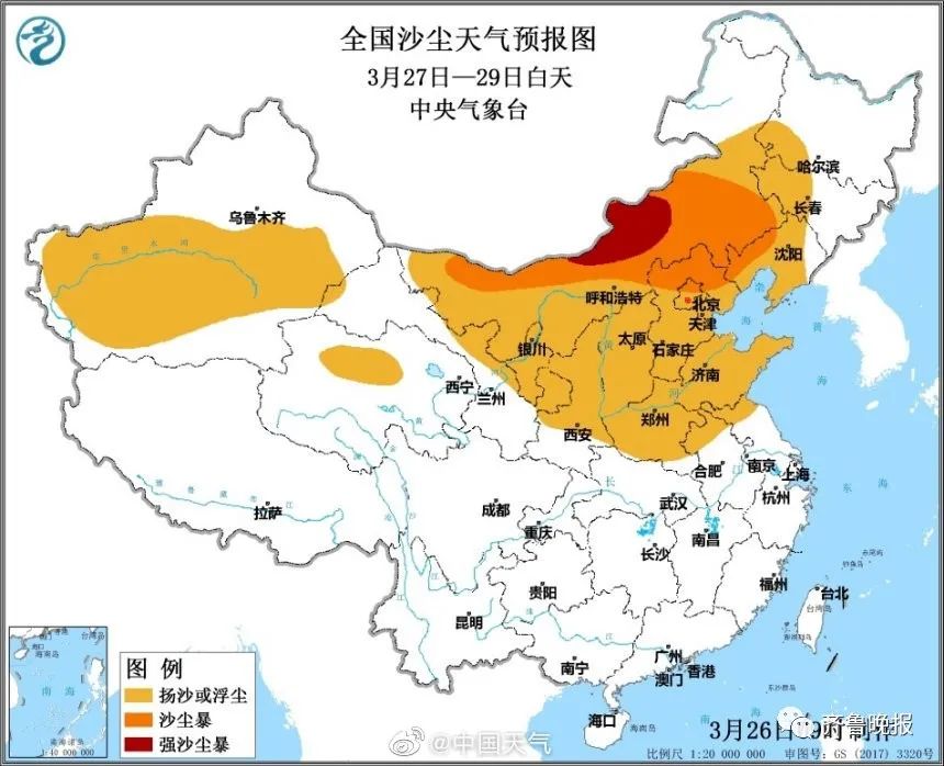 3月28日,受可能的沙尘传输影响,空气质量较差。预计全省以轻至中度污染为主,部分城市可能出现短时重度及以上污染,首要污染物为PM10。